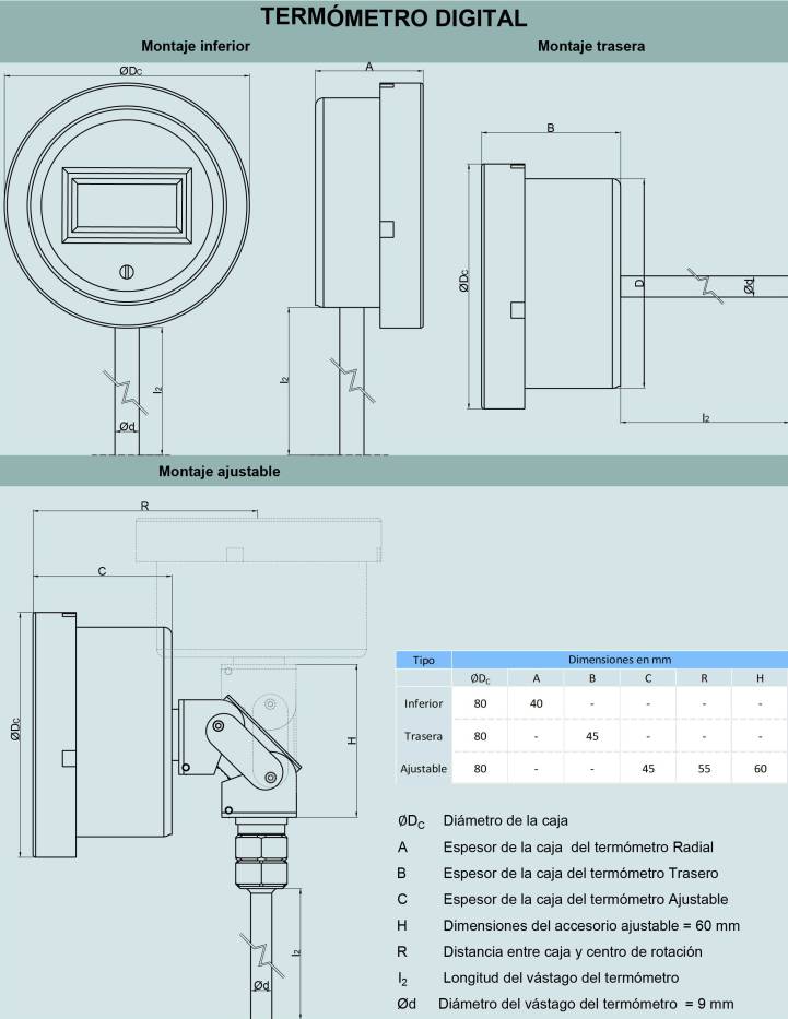 Rango de medición: -40 + 70 ° C; 0 + 100 ° C